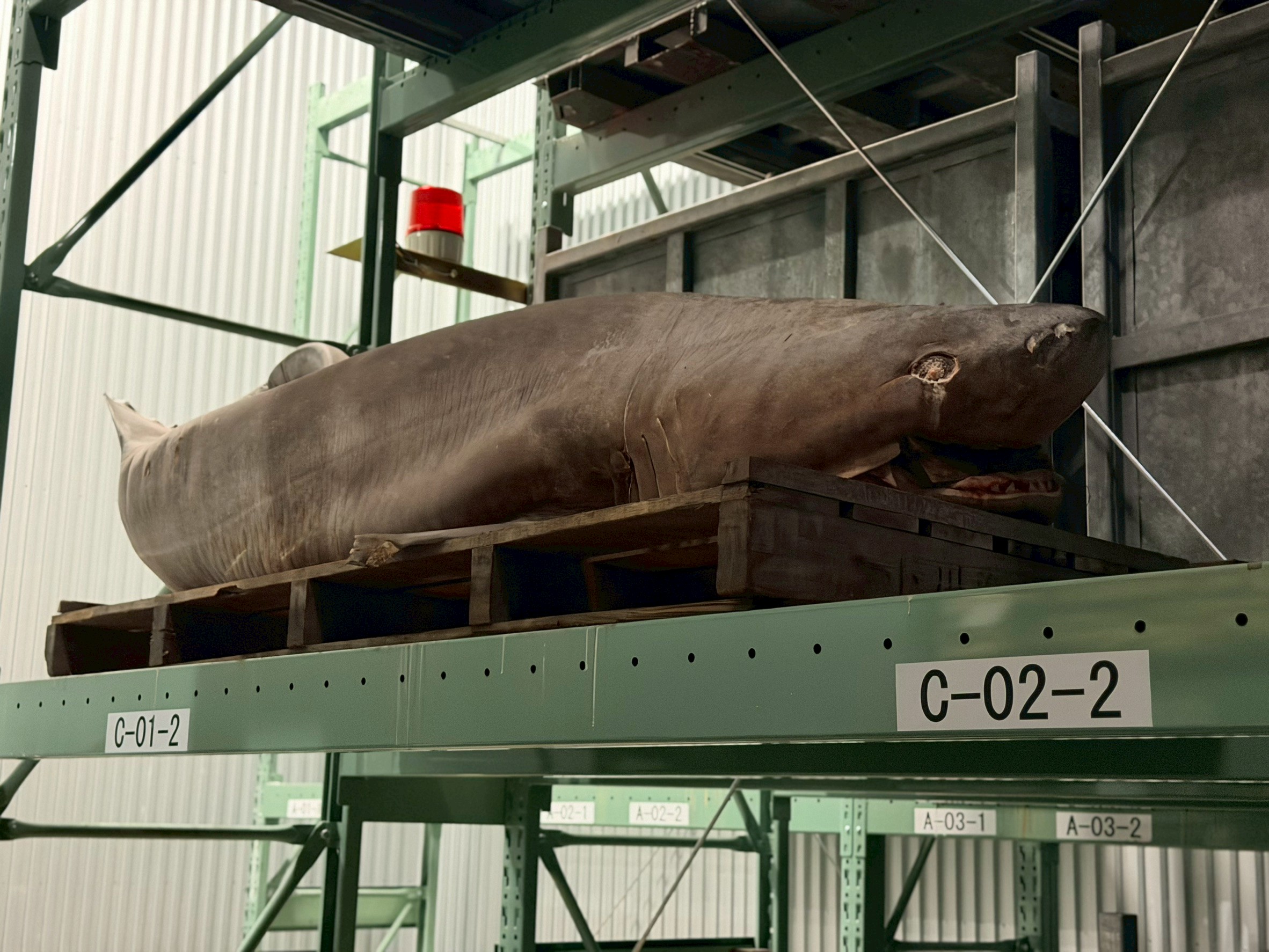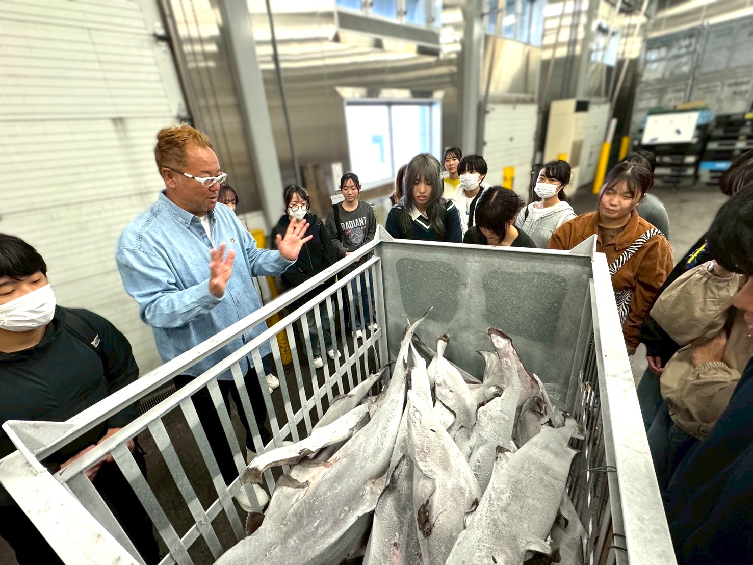 続いて向かったのは、今回のハイライトとも言える場所。 長兼丸が獲った貴重な深海サメなどが保管されている「巨大冷凍倉庫」です🦈