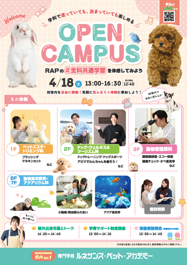 今回はRAPの4つの学科を1日で体験できるイベントです🐾